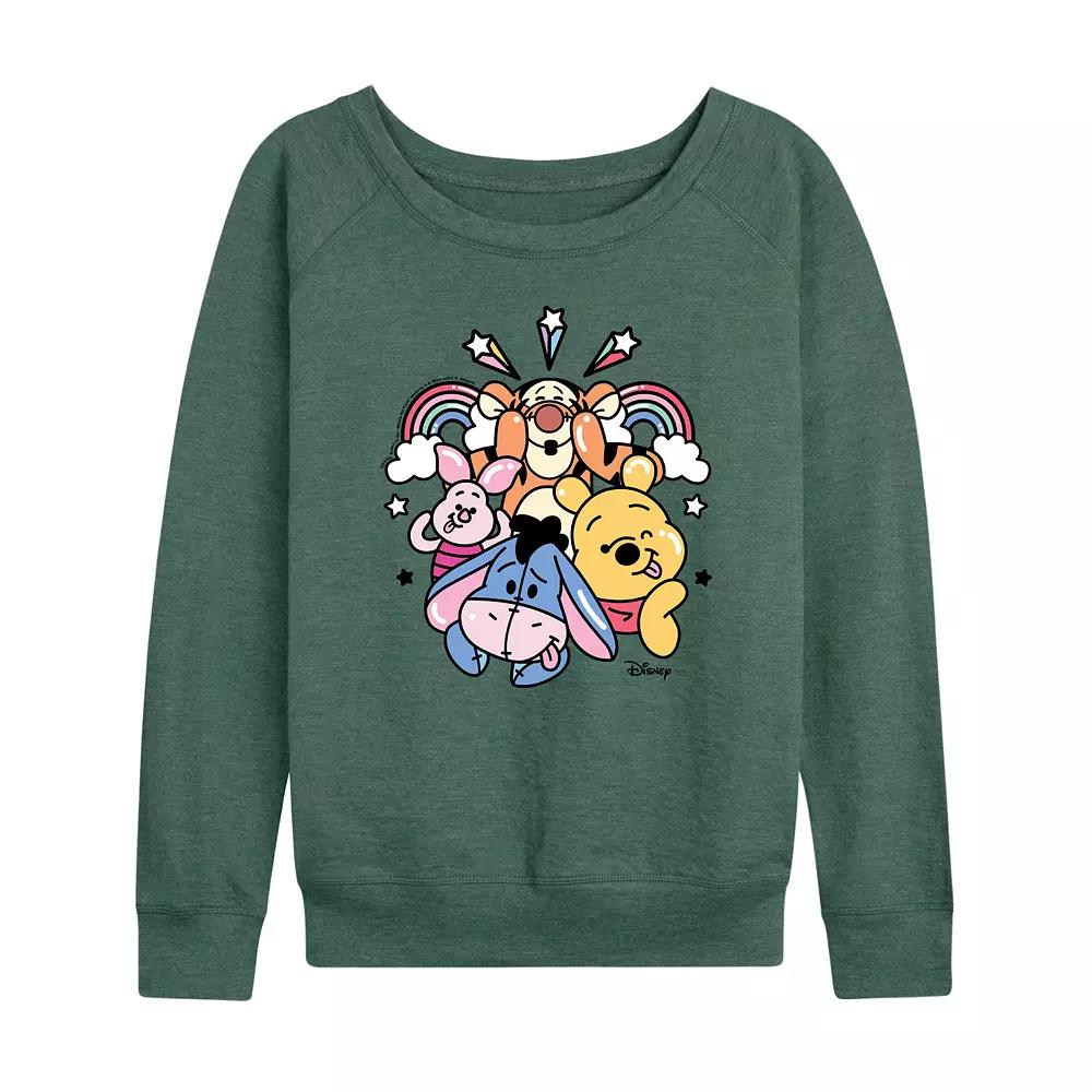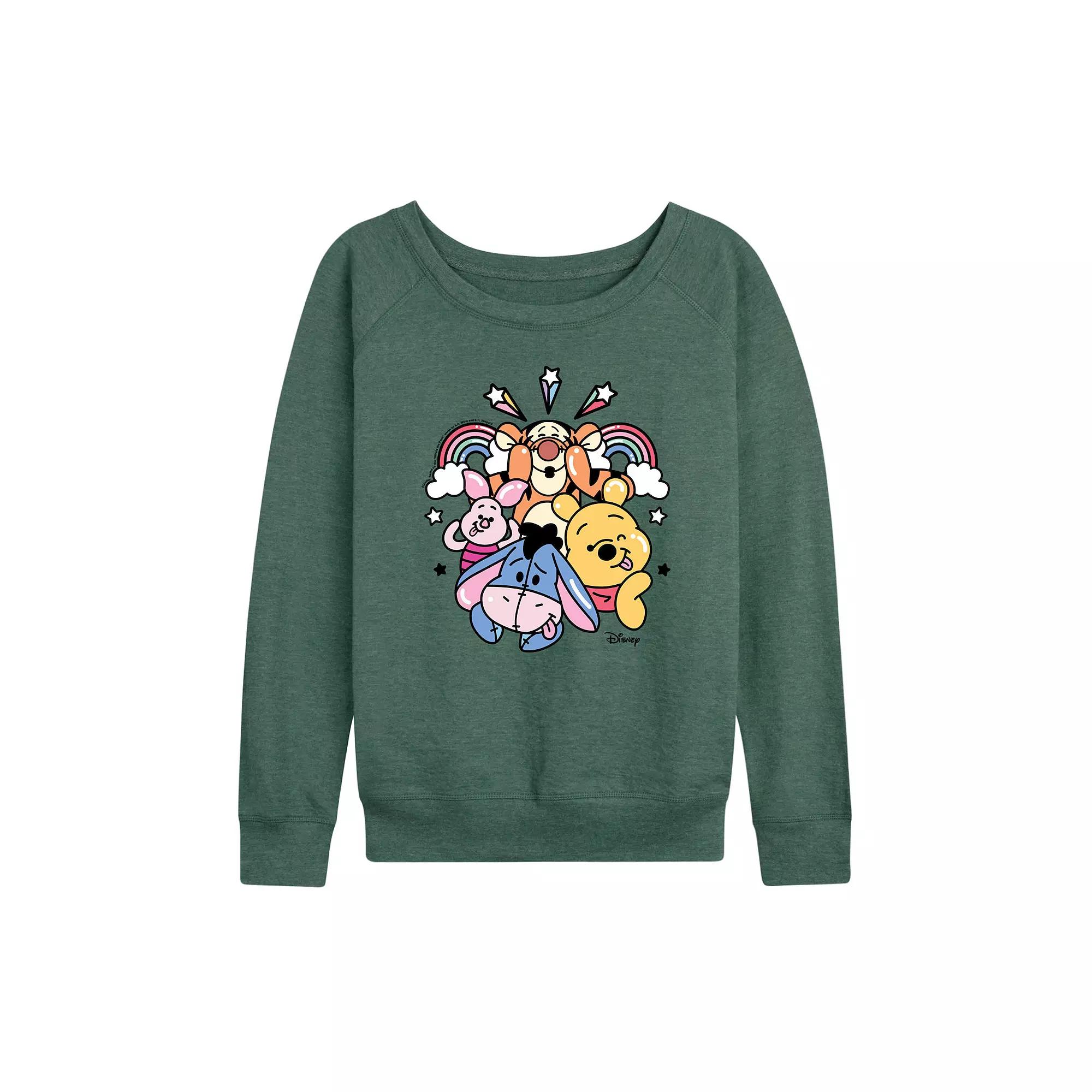 She will love showing off her style with this Disneys Winnie the Pooh Womens Group Rainbow Lightweight French Terry Sweatshirt. Disney based on the Winnie the Pooh works by A.A. Milne and E.H. Shepard FEATURES Long sleeves ScoopneckFABRIC & CARE Cotton/Polyester Machine wash Imported Size: Small. Color: Green. Gender: female. Age Group: kids. Pattern: Graphic.