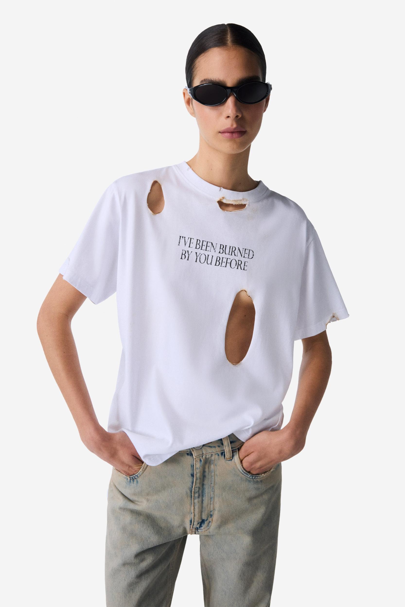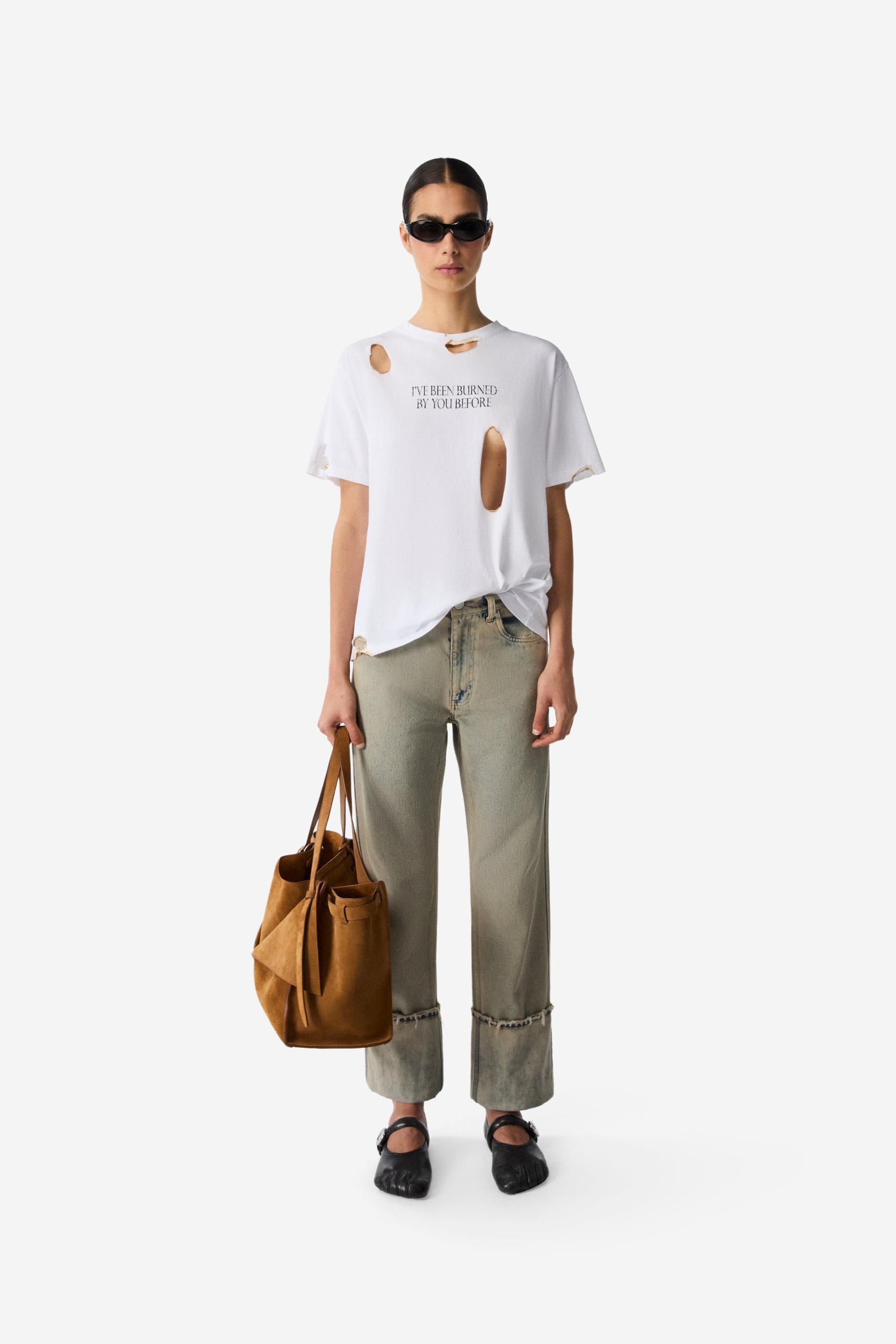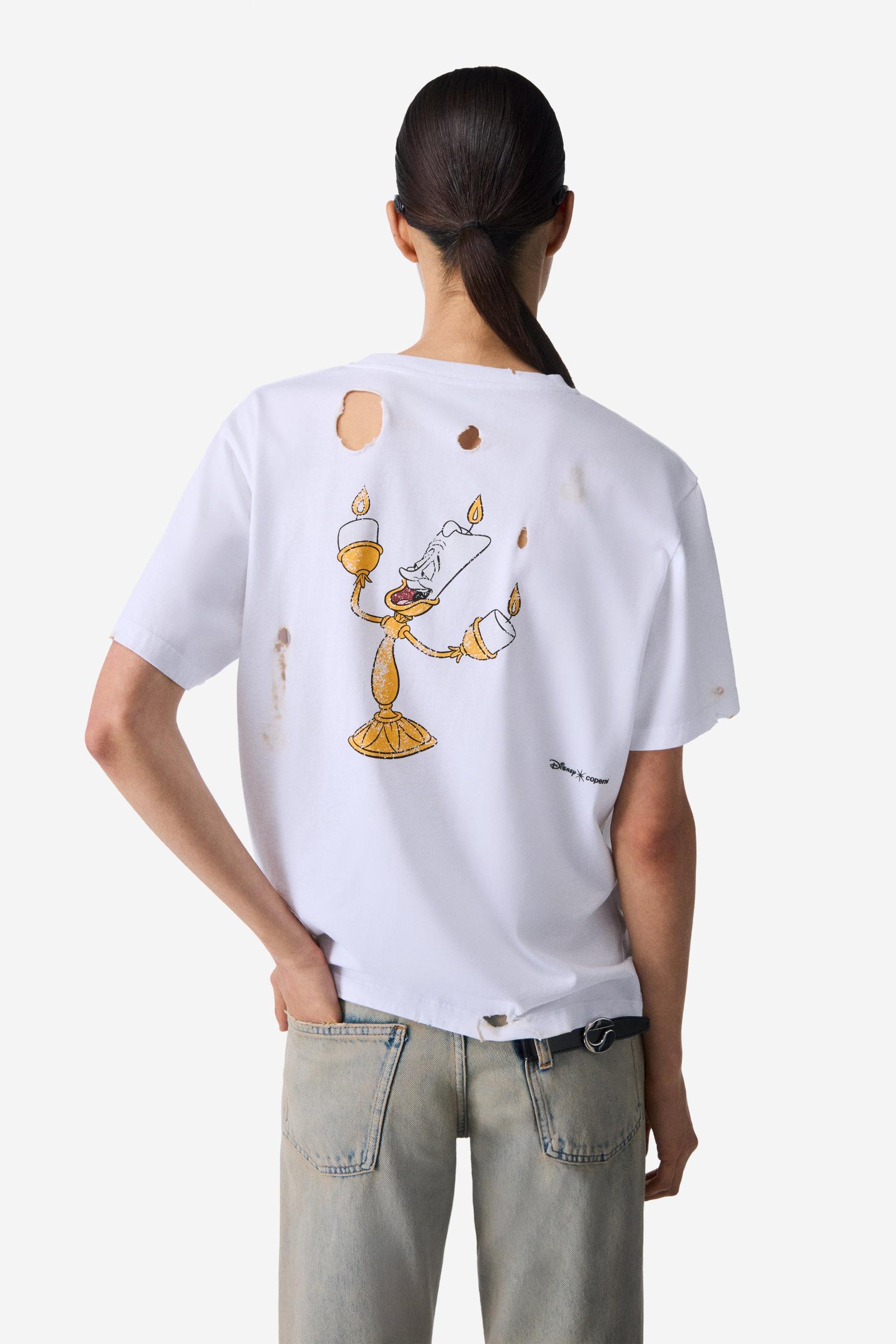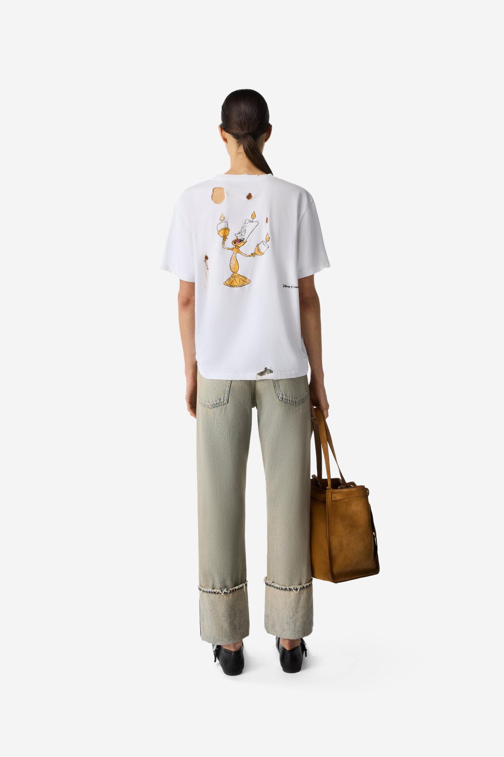 Part of an exclusive collaboration, this T-shirt has a relaxed, boxy fit with a classic crew neckline. The slogan pays homage to the charismatic three-armed golden candelabra from the classic ©Disney tale, who appears to have left his mark: the T-shirt features holes and faux scorch marks as a stylistic expression of burning desire done the Disney way.