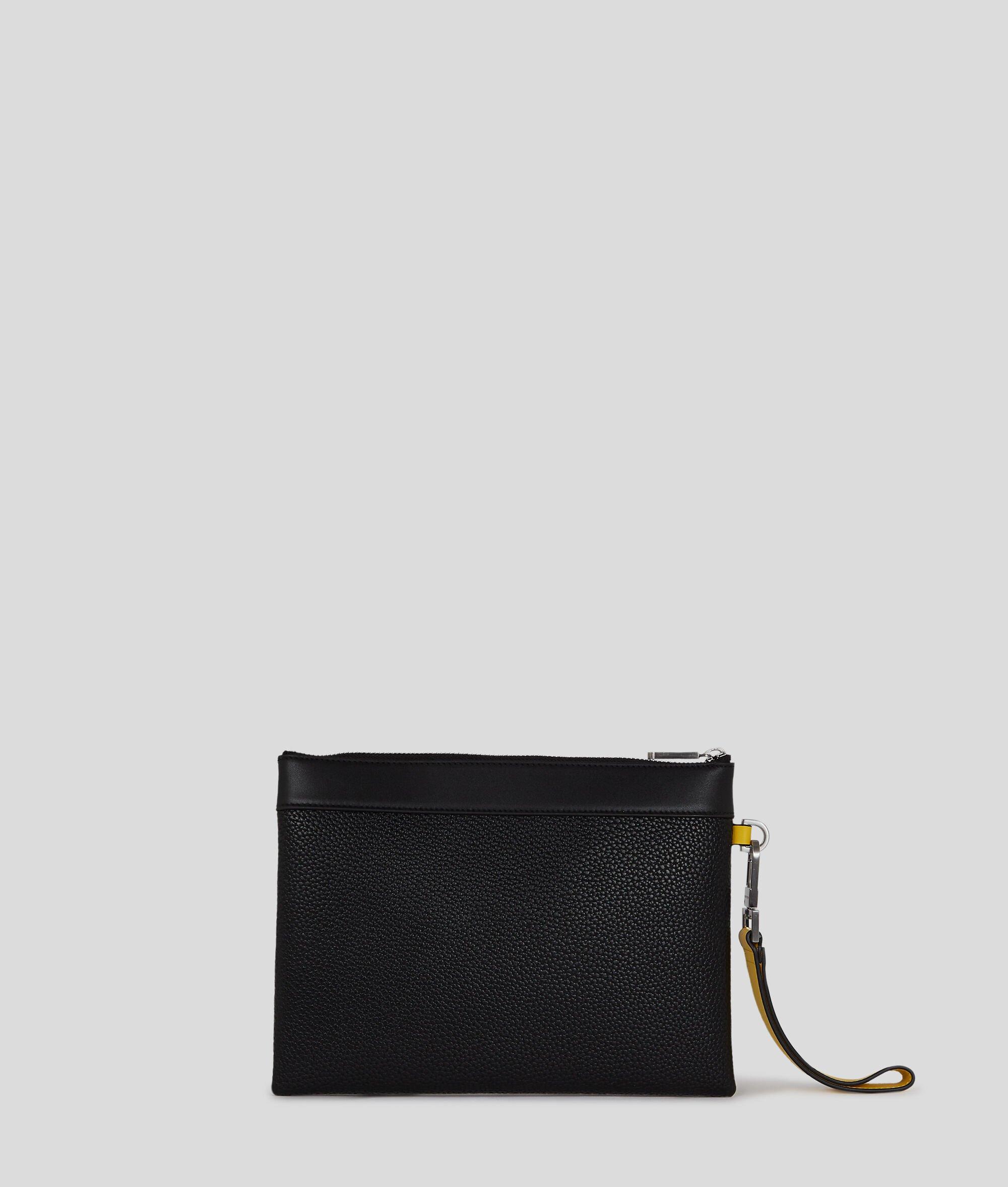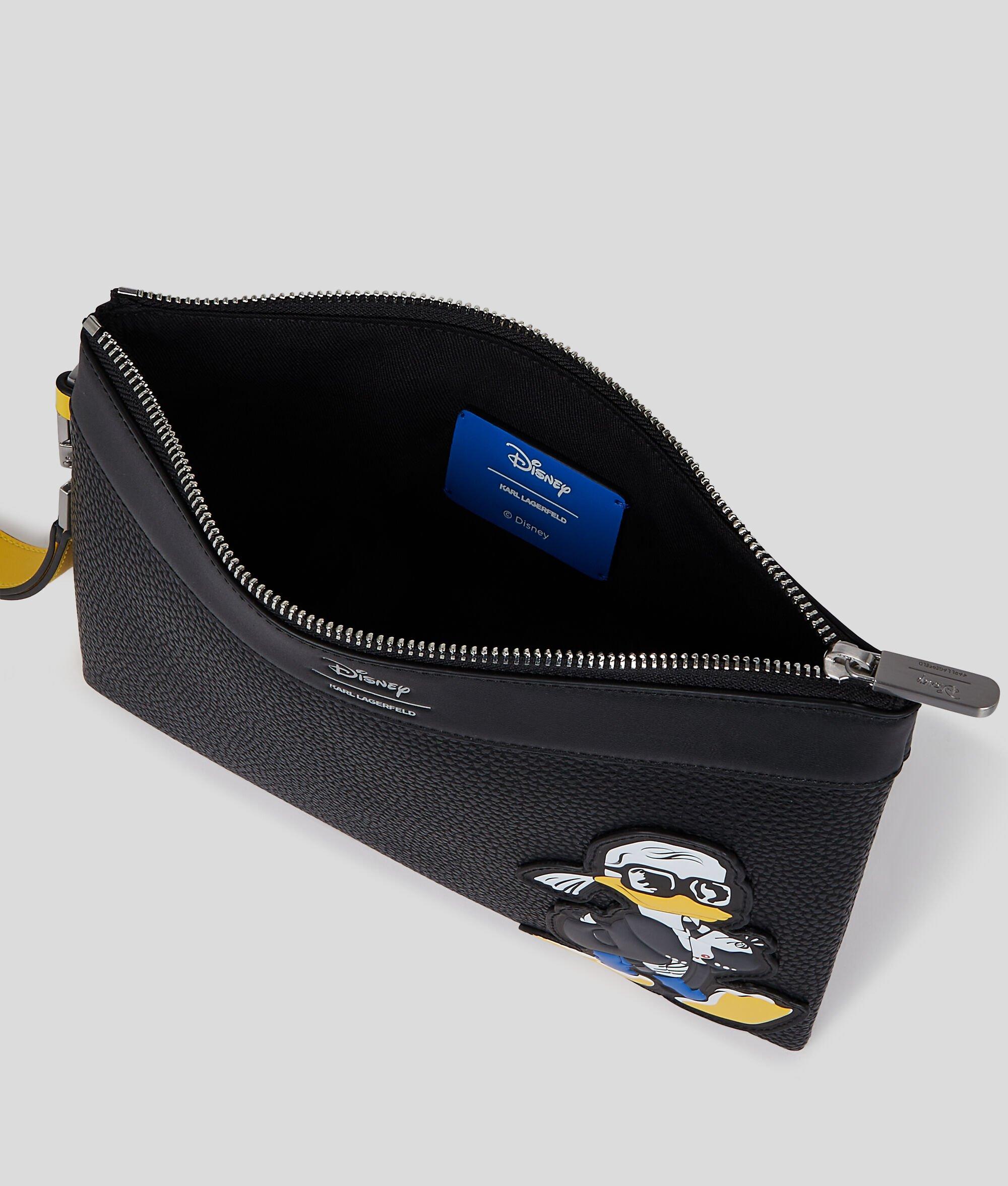 Discover a special-edition pouch from the Disney x KARL LAGERFELD capsule collection. Adorned with a whimsical sketch, hand-drawn by the designer in the early 2000s, it features a secure zip closure, a detachable wrist strap and a practical front pocket.