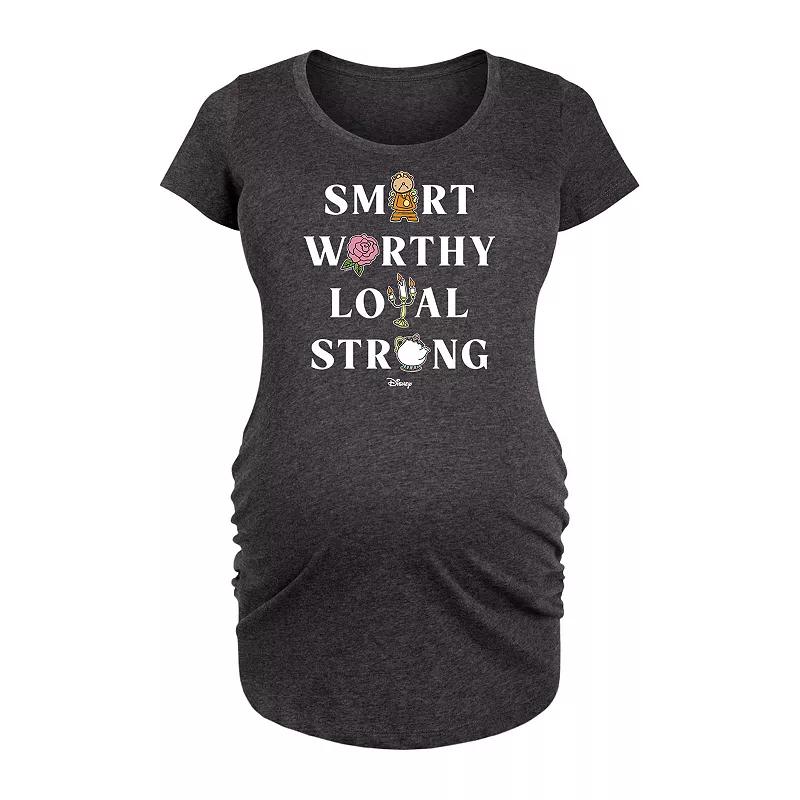 She will love showing off her style with this Disneys Beauty and the Beast Maternity Smart Worthy Loyal Graphic Tee. Disney FEATURES Ruched sides Short sleeves ScoopneckFIT & SIZING Fitted 31 1/2-in. length from shoulder to hemFABRIC & CARE Solid Color: Cotton ; Heather Colors: Cotton/Polyester Machine wash Imported Size: L-Mat. Color: Dark Grey. Gender: female. Age Group: adult.