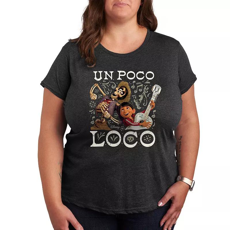 She will love showing off her style with this Disneys Coco Miguel & Hector Plus Un Poco Loco Graphic Tee. Disney FEATURES Short sleeves CrewneckFABRIC & CARE Solid Color: Cotton ; Heather Colors: Cotton/Polyester Machine wash Imported Size: 2X. Color: Dark Grey. Gender: female. Age Group: adult.