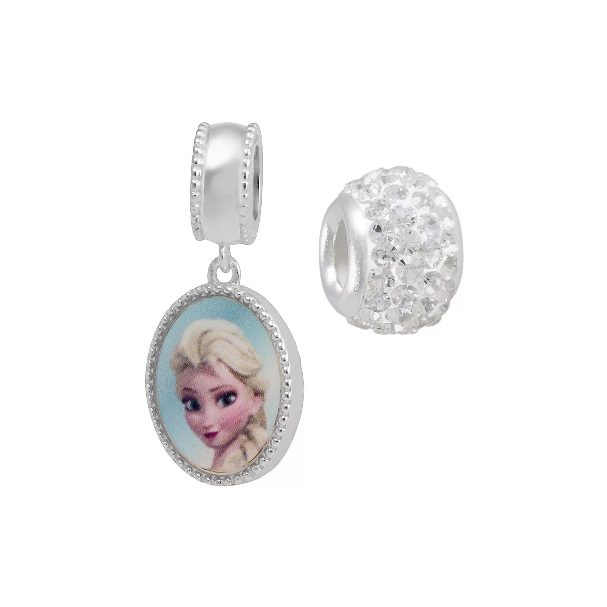 Featuring a reversible Anna and Elsa charm inspired by Disney's Frozen, this set is perfect for any fan of the inspiring sisters. A crystal-accented bead adds eye-catching sparkle.© Disney Featuring a reversible Anna and Elsa charm inspired by Disney's Frozen, this set is perfect for any fan of the inspiring sisters. A crystal-accented bead adds eye-catching sparkle.© Disney SET DETAILS Includes: reversible charm & bead Bead width: 8 mm Charm length: .87 in. Metal: sterling silver Size: One Size. Color: White. Gender: female. Age Group: adult.