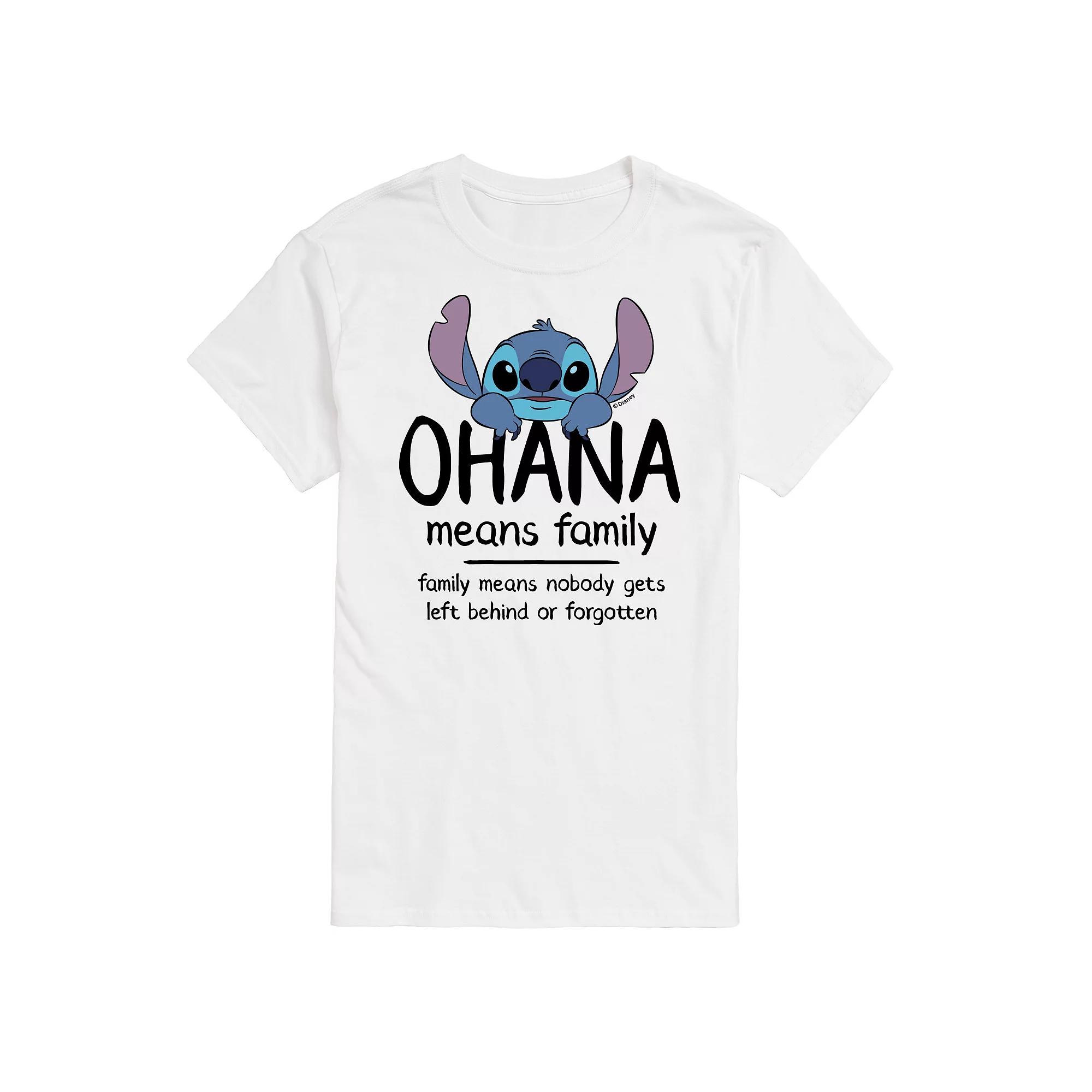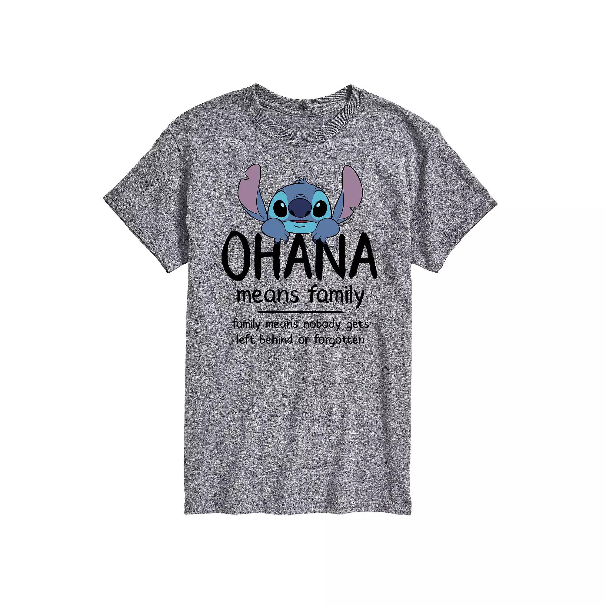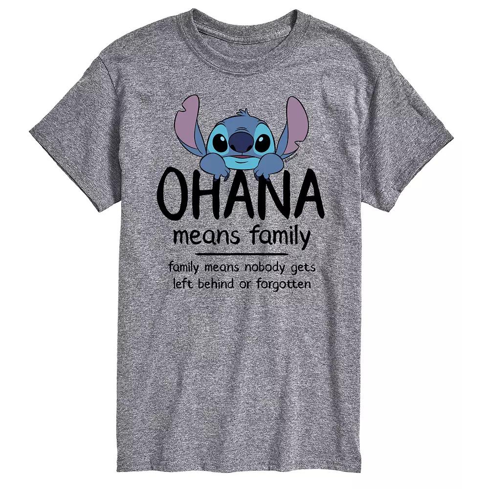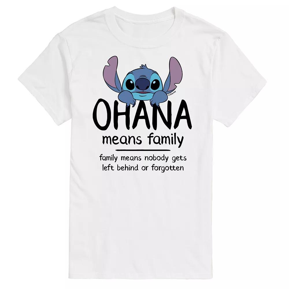 Show off your love for your favorite characters with this mens Lilo & Stitch Ohana Means Family Tee. Disney FEATURES Crewneck Short sleeveFIT & SIZING ClassicFABRIC & CARE Solid colors: cotton; Heather colors: cotton, polyester Machine wash Imported Size: 3XL Tall. Color: White. Gender: male. Age Group: adult. Pattern: Graphic. Material: Polyester|Cotton.