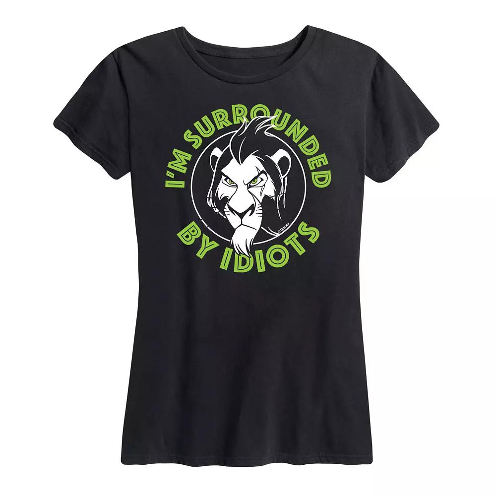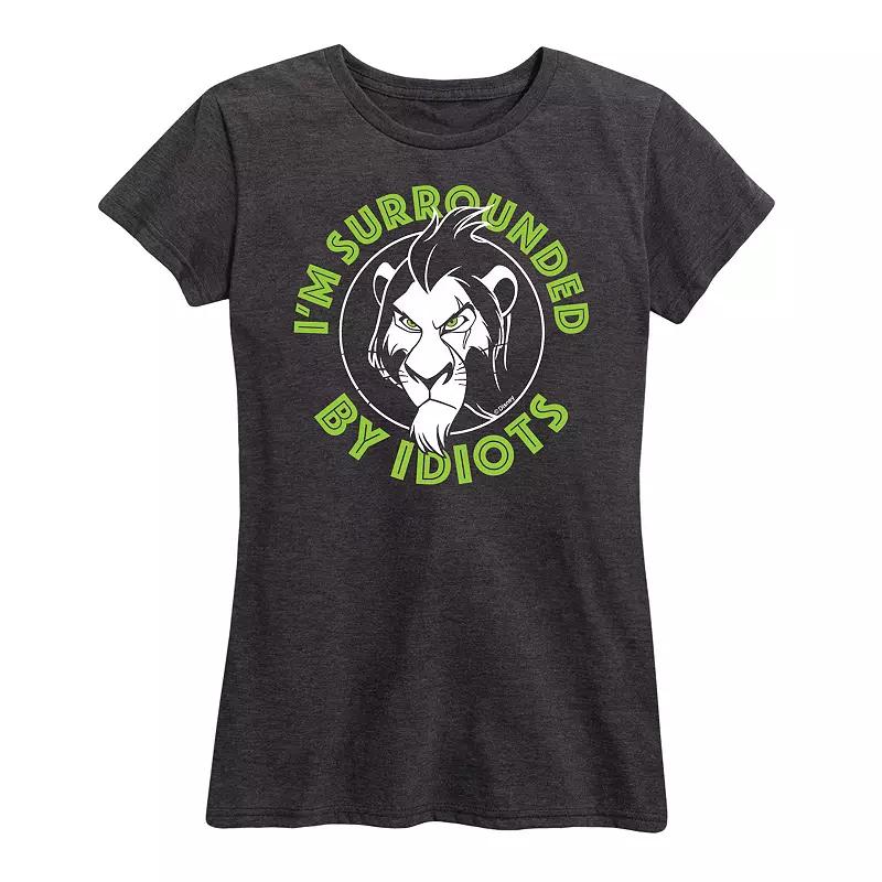 She will love showing off her style with this Disneys Lion King Scar Womens Surrounded By Idiots Graphic Tee. Disney FEATURES Short sleeves CrewneckFABRIC & CARE Solid Color: Cotton ; Heather Colors: Cotton/Polyester Machine wash Imported Size: Large. Color: Dark Grey. Gender: female. Age Group: adult.