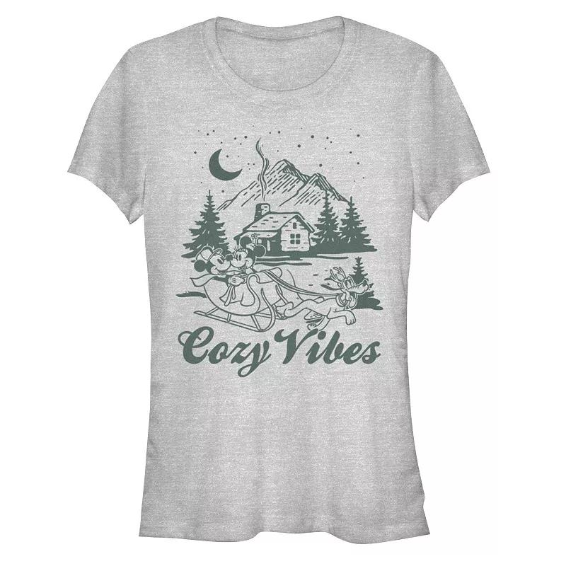 Disney's Mickey and Minnie Mouse Juniors' Cozy Vibes Graphic Tee, Women's,
