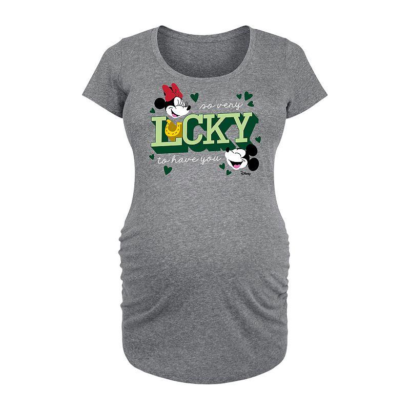 She will love showing off her style with this Disneys Mickey & Minnie Mouse Maternity Lucky To Have You Graphic Tee. Disney FEATURES Ruched sides Ruched sides Short sleeves ScoopneckFIT & SIZING Fitted 31 1/2-in. length from shoulder to hemFABRIC & CARE Cotton/Polyester Machine wash Imported Size: L-Mat. Color: Med Grey. Gender: female. Age Group: adult.