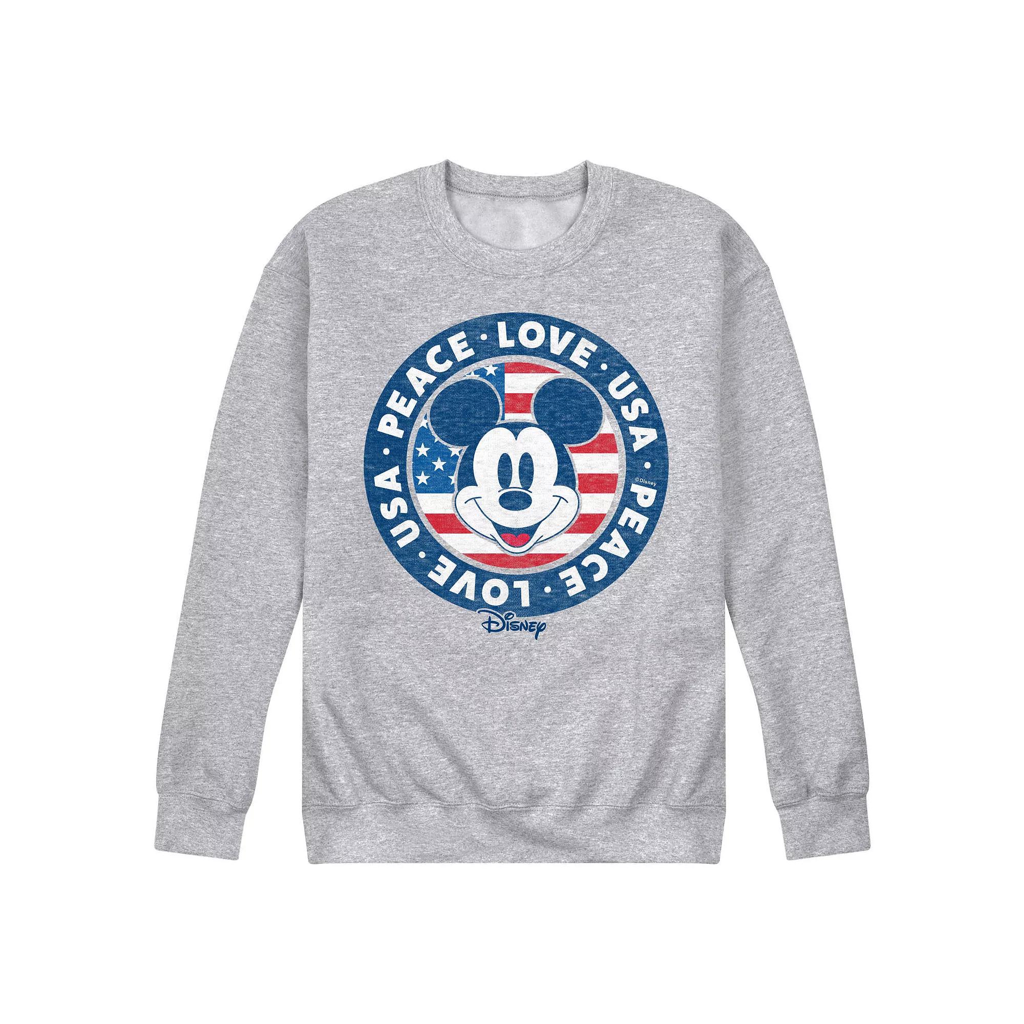 Add fun style to your casual wardrobe with this Disneys Mickey Mouse Mens Peace Love USA Fleece Sweatshirt. Disney Add fun style to your casual wardrobe with this Disneys Mickey Mouse Mens Peace Love USA Fleece Sweatshirt. Disney FEATURES Crewneck Long sleeveFABRIC & CARE Cotton, polyester Machine wash Imported Size: XL. Color: Med Grey. Gender: male. Age Group: adult. Pattern: Graphic.