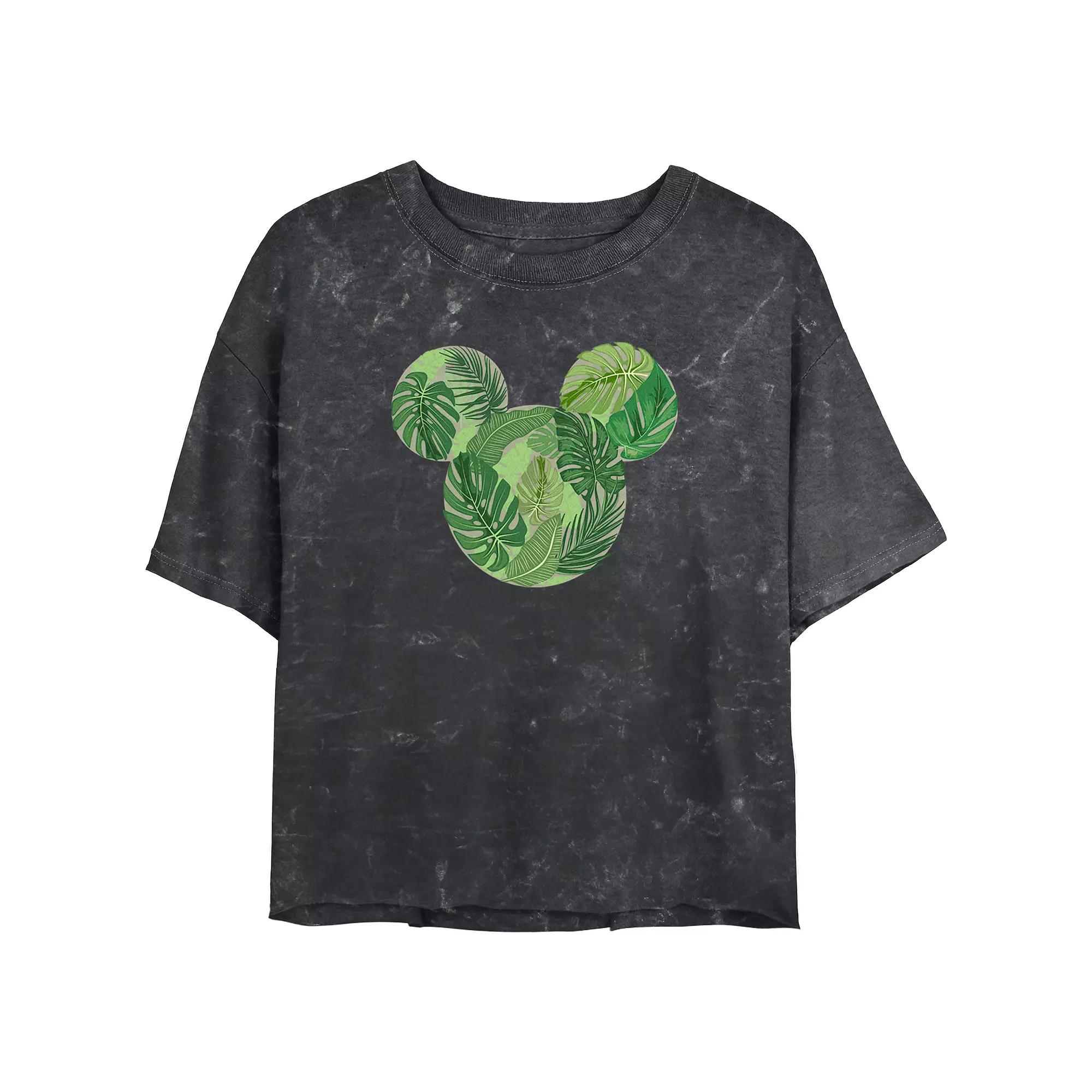 Shell love the look and feel of this Disneys Mickey Mouse Tropical Leaves Head Juniors Cropped Graphic Tee Top Mineral Wash Juniors Graphic Tee. Disney FEATURES Crewneck Short SleevesFABRIC & CARE Cotton Machine wash Imported Size: Small. Color: Black. Gender: female. Age Group: adult.