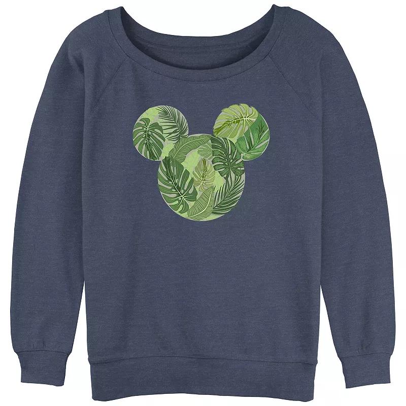 Shell love the look and feel of this Disneys Mickey Mouse Tropical Leaves Head Juniors Graphic Slouchy Terry. Disney FEATURES Crewneck Long SleevesFABRIC & CARE Polyester/Cotton Machine wash Imported Size: Medium. Color: Blue. Gender: female. Age Group: adult.
