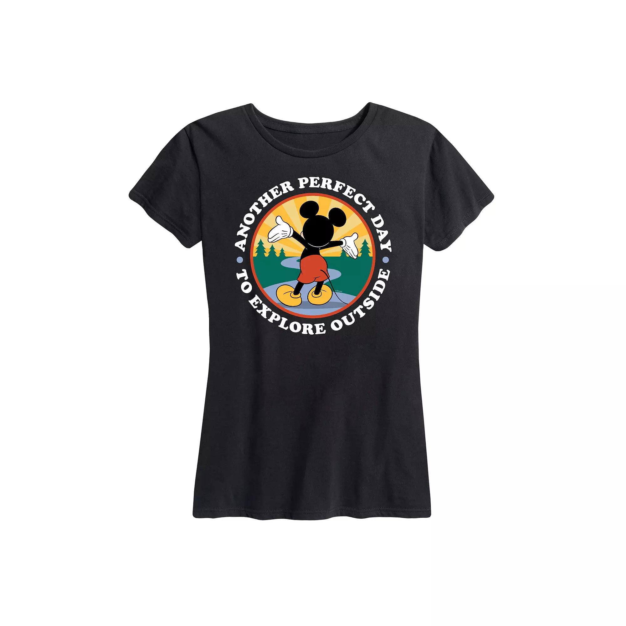 She will love showing off her style with this Disneys Mickey Mouse Womens Explore Outside Graphic Tee. Disney FEATURES Short sleeves CrewneckFABRIC & CARE Solid Color: Cotton ; Heather Colors: Cotton/Polyester Machine wash Imported Size: Medium. Color: Black. Gender: female. Age Group: adult.