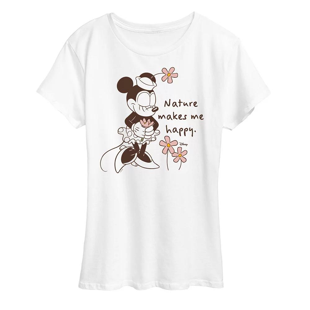 She will love showing off her style with this Disneys Minnie Mouse Womens Nature Makes Me Happy Graphic Tee. Disney FEATURES Short sleeves CrewneckFABRIC & CARE Cotton Machine wash Imported Size: Small. Color: White. Gender: female. Age Group: adult.