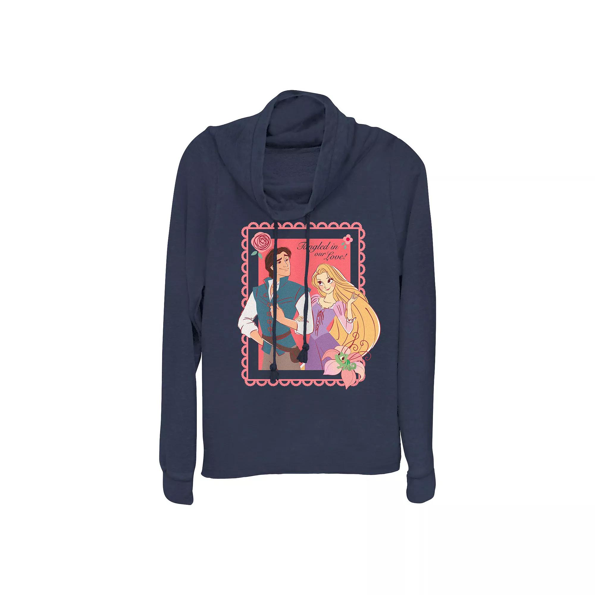 Show your love on Valentine's Day with this Disney's Tangled Flynn And Rapunzel Tangled In Love Women's Cowlneck Graphic Lightweight Long Sleeve. © DisneyFEATURES Cowlneck Long sleevesFABRIC & CARE Polyester, rayon, spandex Machine wash Imported Size: X Small. Color: Navy. Gender: female. Age Group: adult.