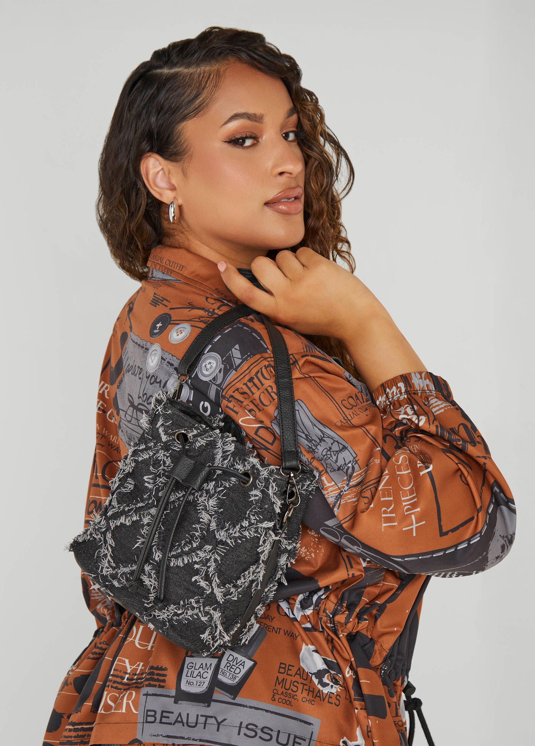 Distressed Denim Buckle Bag