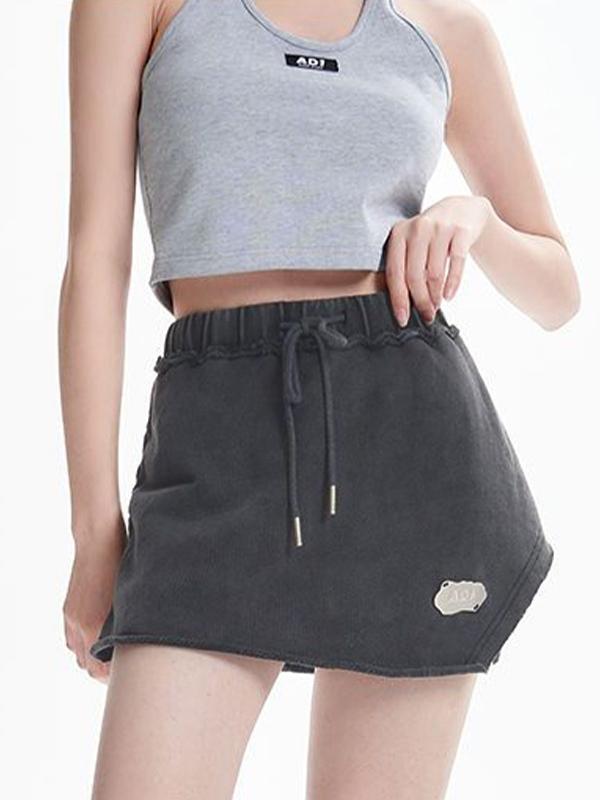 Distressed Washed Double Zip Hoodie & Frayed Hem Skirt Set