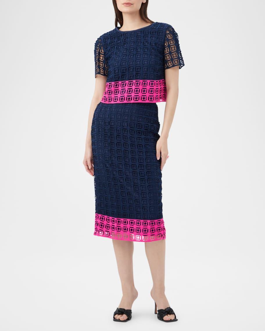 Dita 2 Colorblock Lace Midi Pencil Skirt