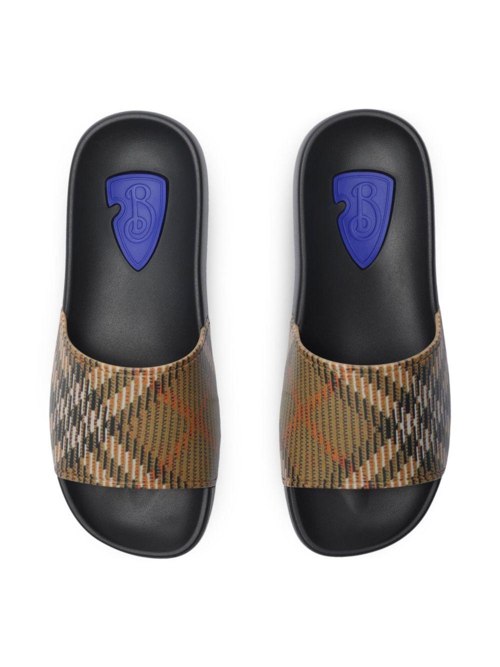 Burberry Dive slides | Brown | sand beige | slip-on style | Vintage Check pattern | open toe | branded footbed | flat sole | Thermoplastic Polyurethane (TPU)/Polyethylene vinyl acetate (PEVA)/Thermoplastic Polyurethane (TPU)/Thermoplastic Polyurethane (TPU) | Flip-Flops & Slides | Shoes | Women