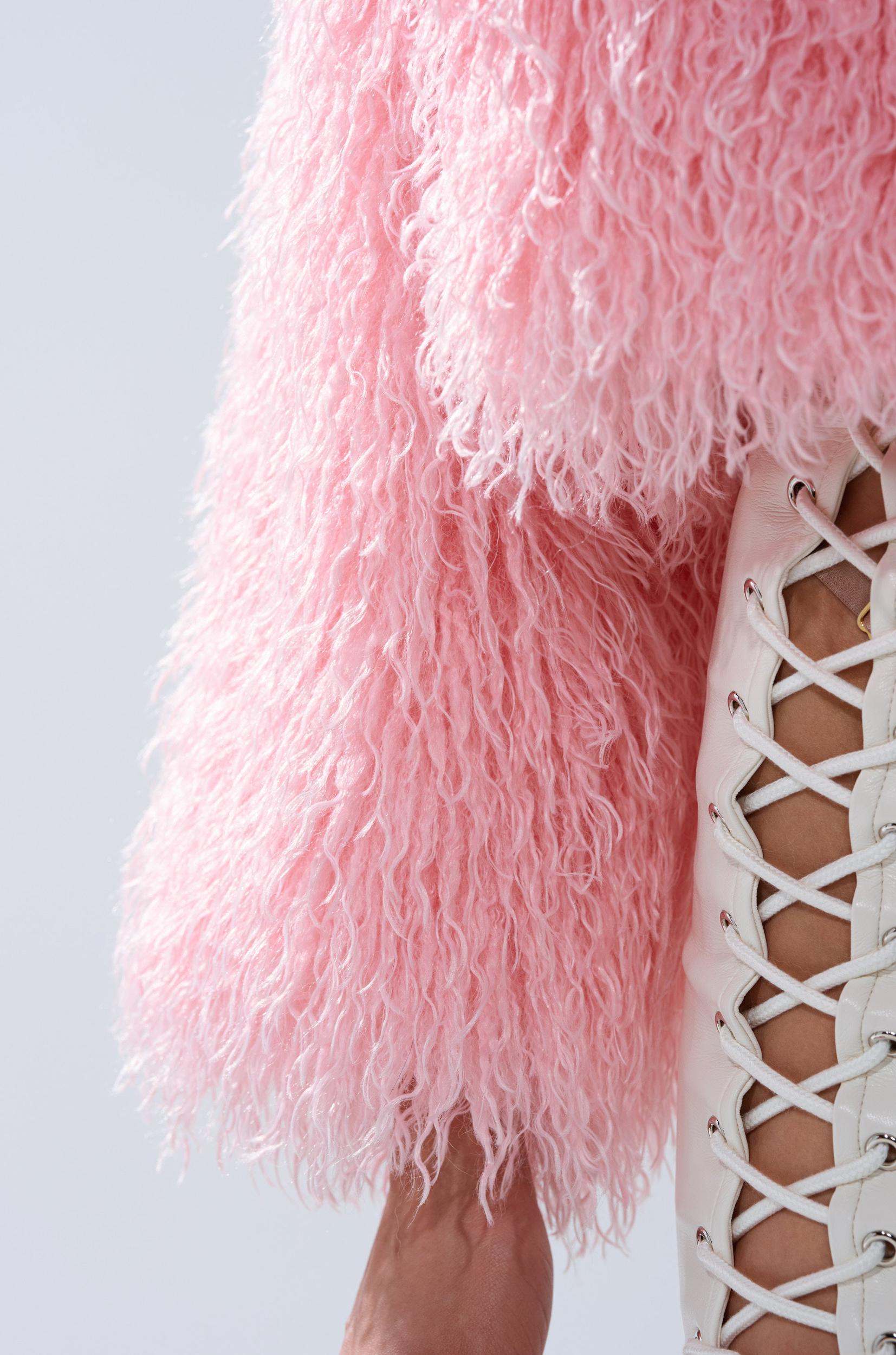 Wrap yourself in pure elegance with The AKIRA Label Divine Feminine Faux Fur Coat. Crafted from ultra-shaggy, plush faux fur, this sweet coat features a plunging neckline, a wide fold over collar, long sleeves, dual waist pockets, a singular hook-and-eye front closure, and a silky inner lining. Complete with a slightly oversized, relaxed fit. - Shell: 100% Polyester, Lining: 100% Polyester- Dry Clean Only- No Stretch- Imported (all measurements approximate from size small)- 20” Shoulder to Hem- 17” Shoulder to Shoulder- 23” SleevesProduct ID: 1062535 (all measurements approximate from size 1X)- 22” Shoulder to Hem- 19” Shoulder to Shoulder- 24” SleevesProduct ID: 1062539