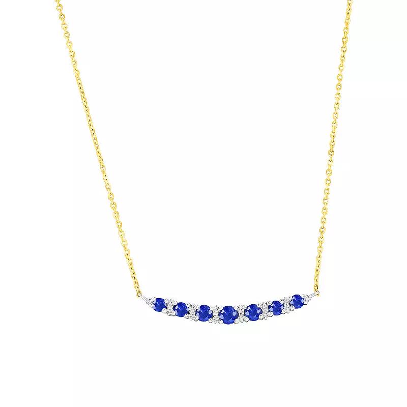 Enchant yourself with this dazzling Divine Gold 14k gold round gemstone & diamond accent necklace. Click on this JEWELRY & WATCHES GUIDE to learn about fit, styles, materials and more! Enchant yourself with this dazzling Divine Gold 14k gold round gemstone & diamond accent necklace. Click on this JEWELRY & WATCHES GUIDE to learn about fit, styles, materials and more! FEATURES Chain length: 18 in. Chain type: cable Clasp: lobster-claw Metal: 14k gold Plating: 14k gold Finish: polished Packaging: boxed Imported Nickel freeSTONE DETAILS Stone type: ruby, sapphire Total weight: 1/3 ct. Center stone size: 2.6 mm x 2.6 mm Setting: prongDIAMOND DETAILS Total weight: less than 1/10 ct. Color grade: G-H Clarity: SI3 Setting: micro prong Diamond weights are approximate. Diamond Total Weights may vary between .01 and .13 ct. Some diamonds consist of fewer than 17 facets. Gemstones may have been treated to enhance their appearance. Special care may be required. Please visit our Gemstone Treatment & Special Care Guide for more information. Size: 16-18 ADJ. Color: Blue. Gender: female. Age Group: adult.