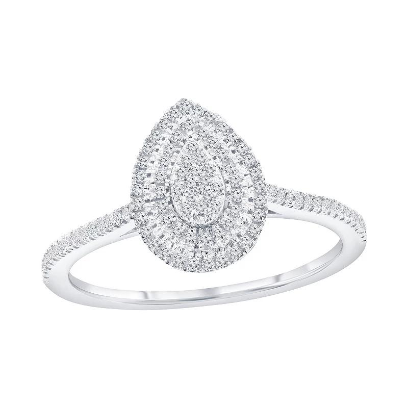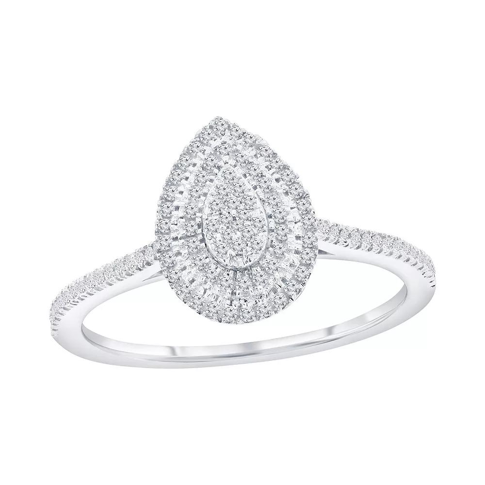 Enhance your look with this stunning 1/4 carat T.W. diamond double frame pear shaped ring by Divine Gold. Click on this JEWELRY & WATCHES GUIDE to learn about fit, styles, materials and more! Enhance your look with this stunning 1/4 carat T.W. diamond double frame pear shaped ring by Divine Gold. Click on this JEWELRY & WATCHES GUIDE to learn about fit, styles, materials and more! FEATURES Width: 21 mm Shank style: solitaire Band fit: comfort fit Metal: sterling silver Plating: rhodium Finish: polished Packaging: boxed Imported Nickel freeDIAMOND DETAILS Total weight: 1/4 ct. Color grade: G-H Clarity: SI8 Setting: micro pave Diamond weights are approximate. Diamond Total Weights may vary between .01 and .13 ct. Some diamonds consist of fewer than 17 facets. Size: 8. Color: White. Gender: female. Age Group: adult.