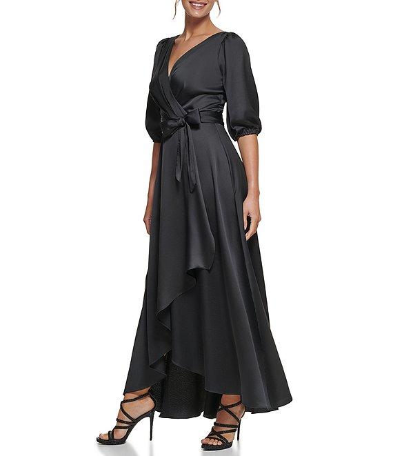 DKNY by Donna Karan 3/4 Balloon Sleeve Surplice V-Neck Faux Wrap Gown