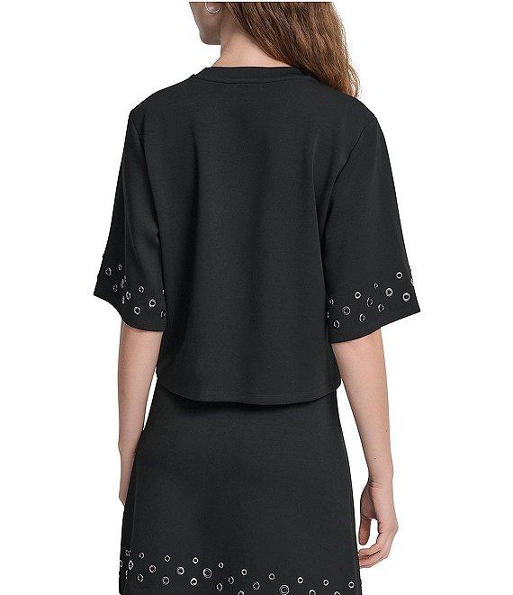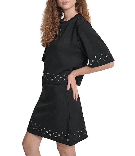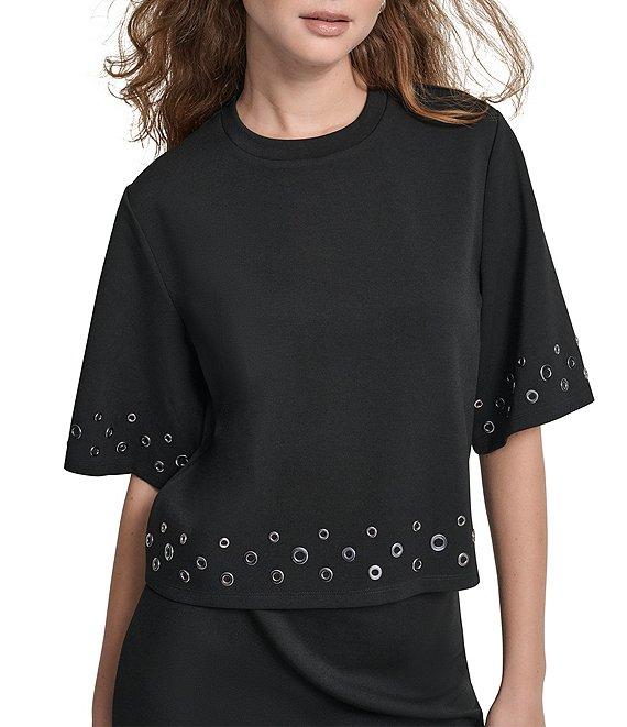 DKNY by Donna Karan Coordinating Ponte Crew Neck Short Sleeve Grommet Hem Top