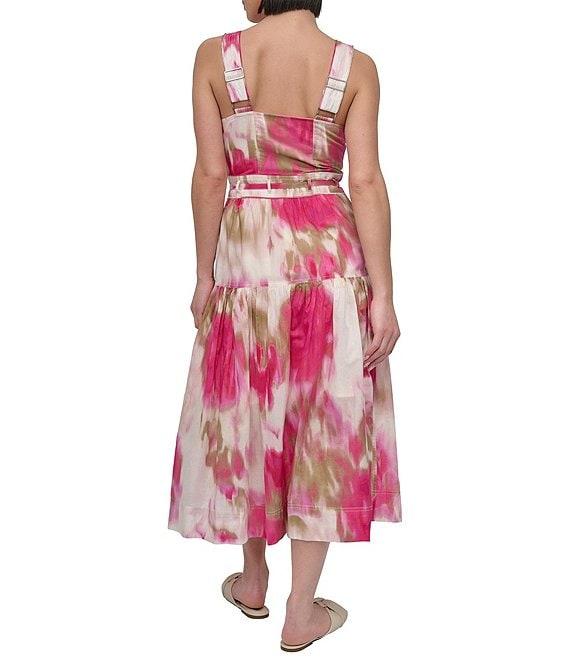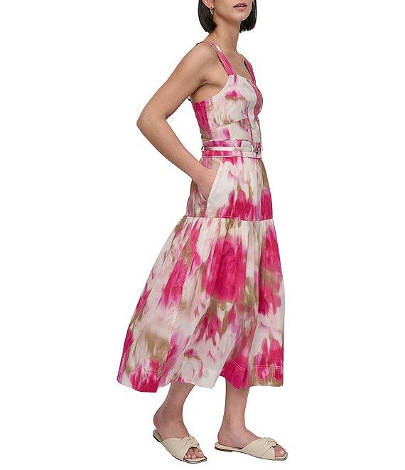 DKNY by Donna Karan Cotton Square Neck Sleeveless Belted Midi Dress