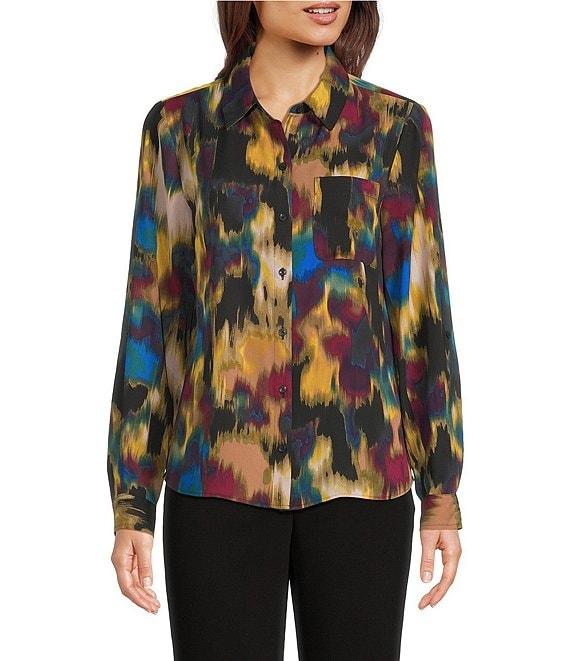 From DKNY by Donna Karan, this shirt features: Georgette fabrication Point collar neckline Long roll tab sleeves Font functional pocket Button front closure Polyester Machine wash Imported.