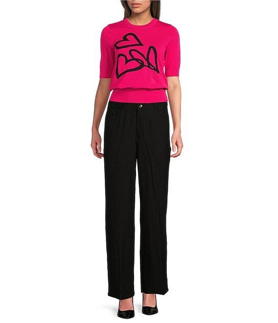 DKNY By Donna Karan Graffiti Heart Knit Crew Neck Short Sleeve Top