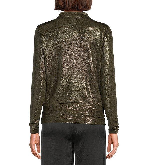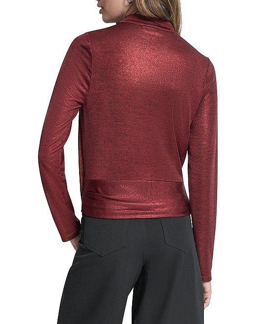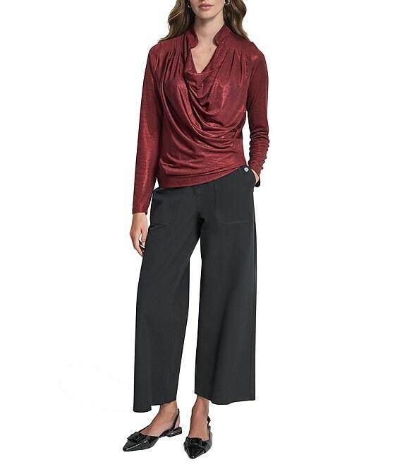 DKNY by Donna Karan Heather Foil Cowl Neck Long Sleeve Top
