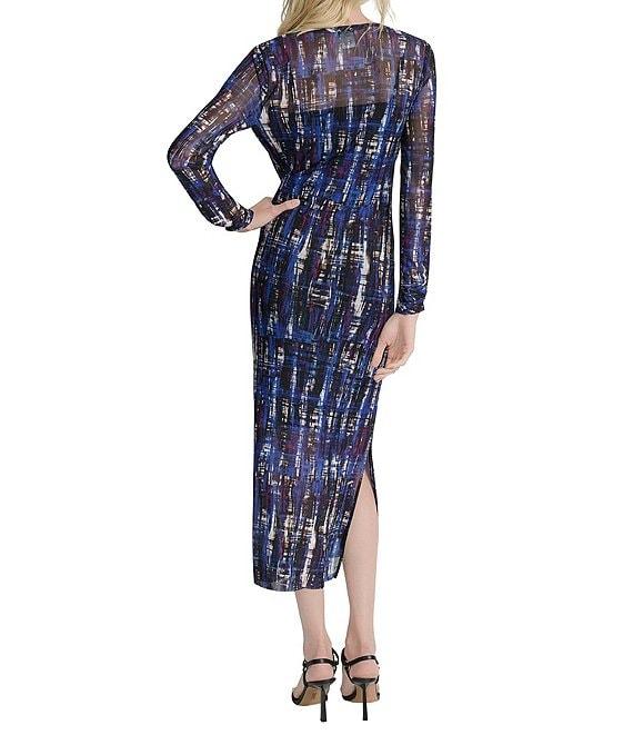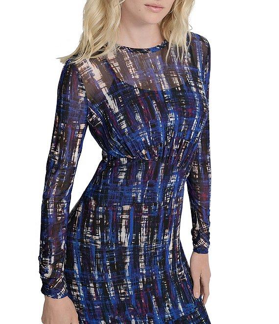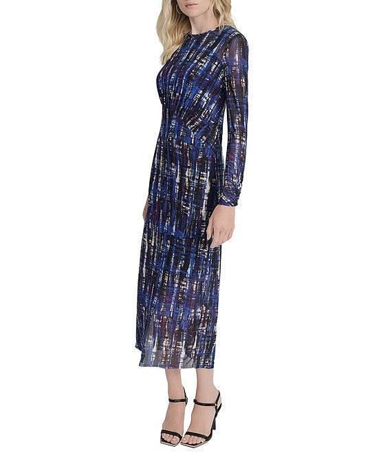 From DKNY by Donna Karan, this dress features: Mesh fabrication Round neckline Long sleeves Lined Slip lining with adjustable straps A-line silhouette Maxi dress Pull on construction Approx. 51.5" in length Polyester/spandex Dry clean Imported.