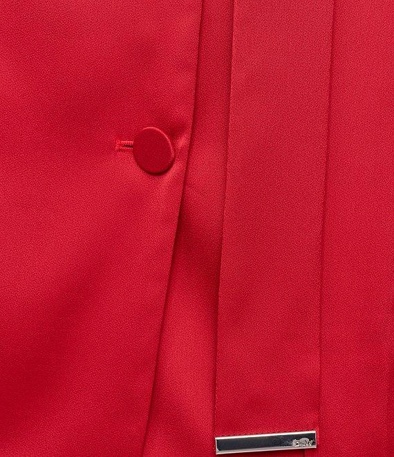 From DKNY by Donna Karan, this dress features: Satin back crepe fabrication Collar neckline V-neckline Long sleeves Lined Shift silhouette Removable belt Front pockets Above the knee Button front closure Approx. 36.75" in length Polyester Dry clean Imported.