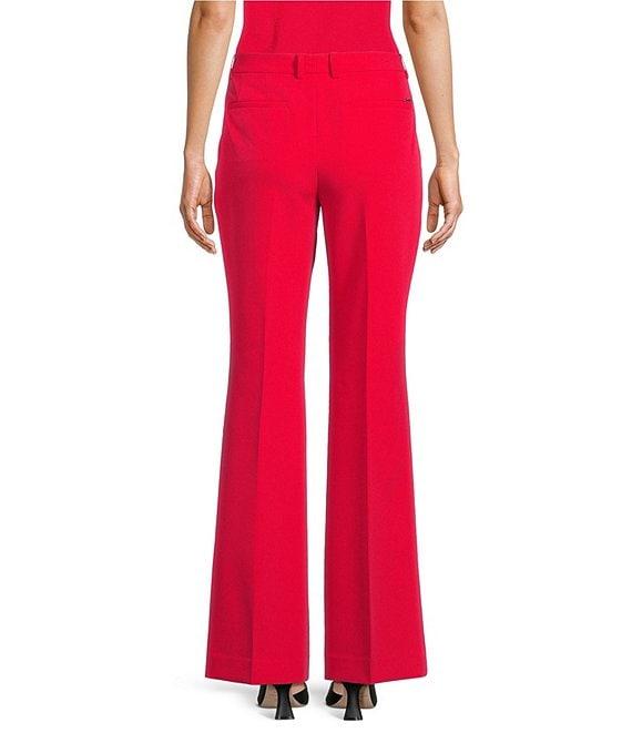 From DKNY by Donna Karan, these pants feature: Tech tailoring fabrication Fit and flare silhouette Button and zip front closure Front and back pockets Lined Approx. 33' inseam Polyester/spandex Machine wash/tumble dry Imported.