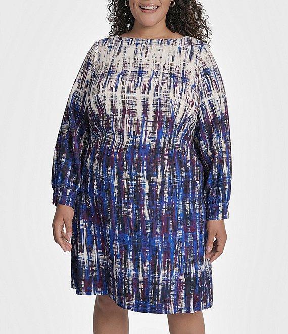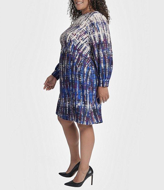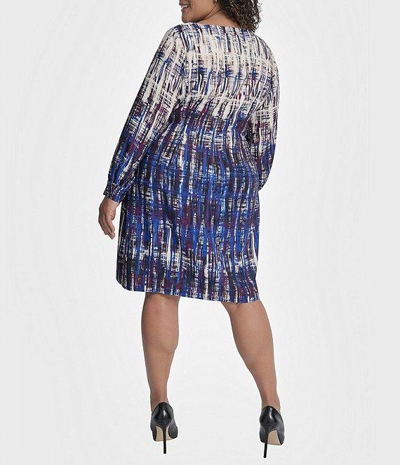 From DKNY by Donna Karan, this dress features: Salon stretch fabrication Round neckline Long sleeves Sheath silhouette Above the knee Center back exposed zipper Hook and eye closure Approx. 39" in length Polyester/spandex Dry clean Imported.