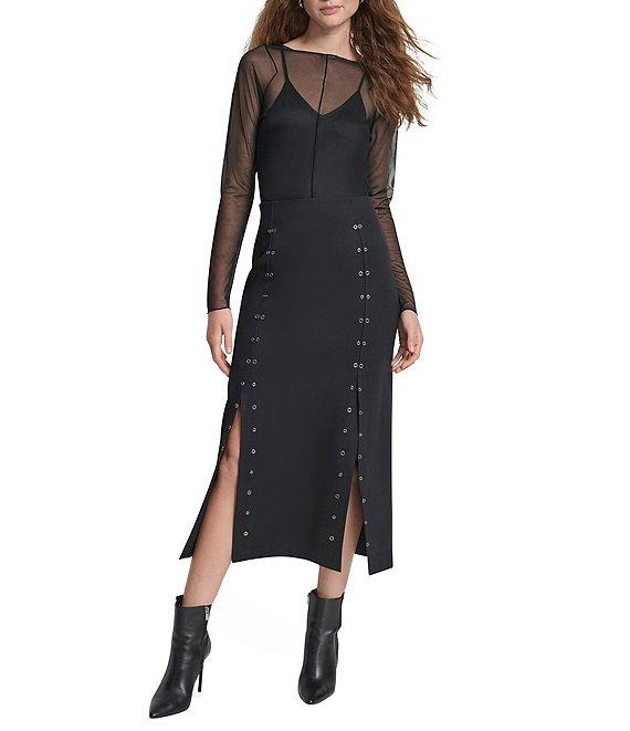 DKNY by Donna Karan Ponte Grommet Slit Midi Skirt