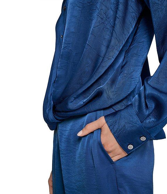 DKNY by Donna Karan Satin Crease Point Collar Twist Button Front Top