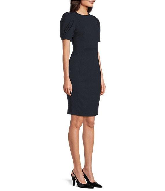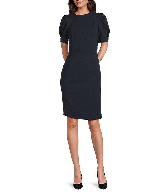 DKNY by Donna Karan Scuba Crepe Crew Neck Balloon Short Sleeve Sheath Dress