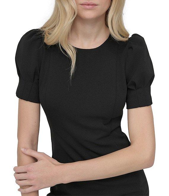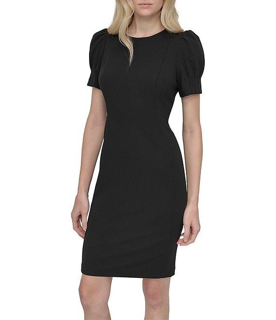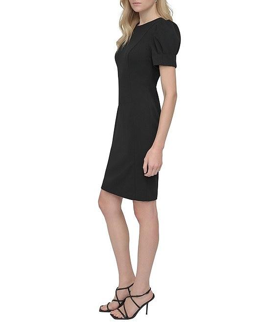 DKNY by Donna Karan Scuba Crepe Round Neck Short Puff Sleeve Sheath Dress