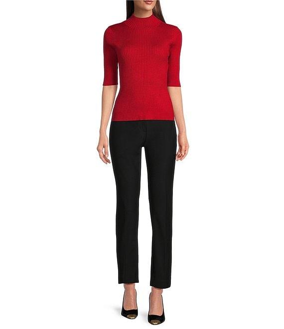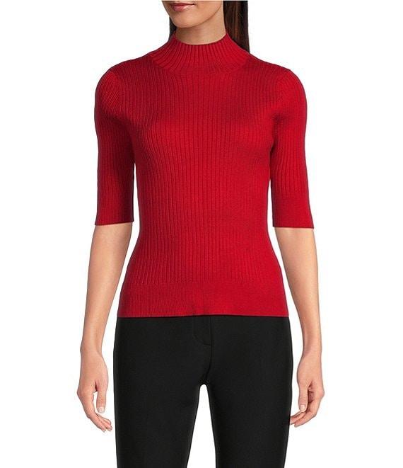 DKNY by Donna Karan Short Sleeve Mock Neck Ribbed Knit Top