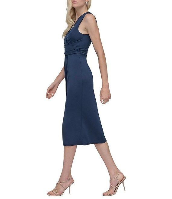 DKNY by Donna Karan Sleevless Ruched Sheath Midi Dress