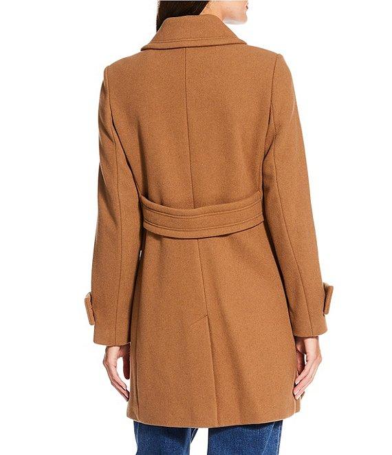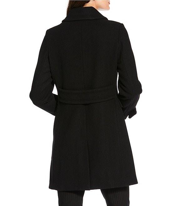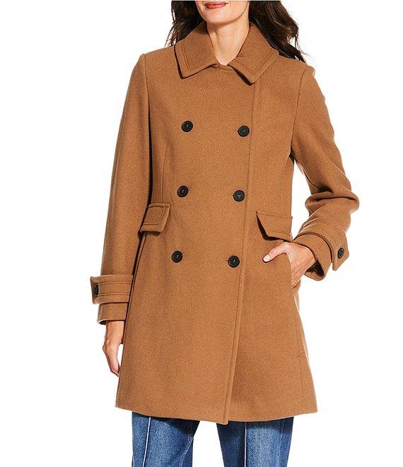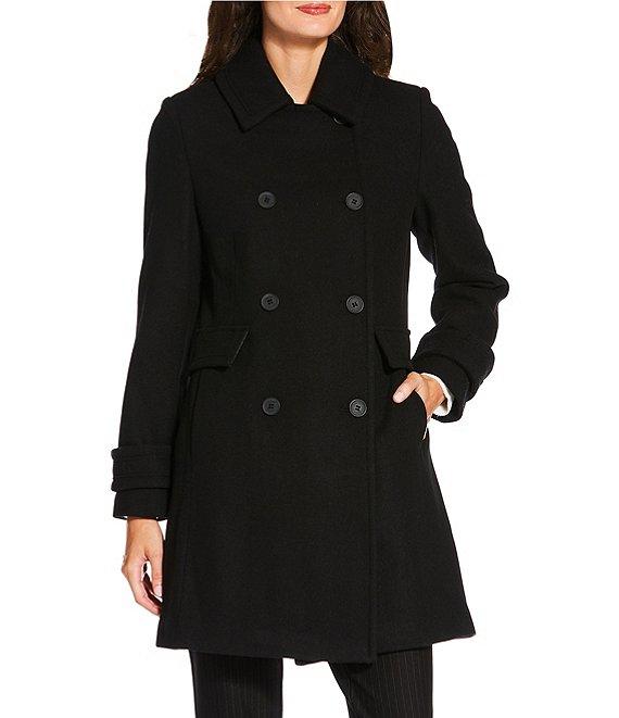 From DKNY by Donna Karan, this coat features: Wool blend fabrication Double breasted silhouette Point collar neckline Long sleeves Two front pocket Standard fit Fully lined Straight hemline Button front closure Approx. 34" length Wool/polyester/nylon/acrylic/viscose Machine wash Imported.