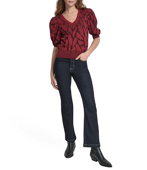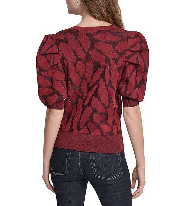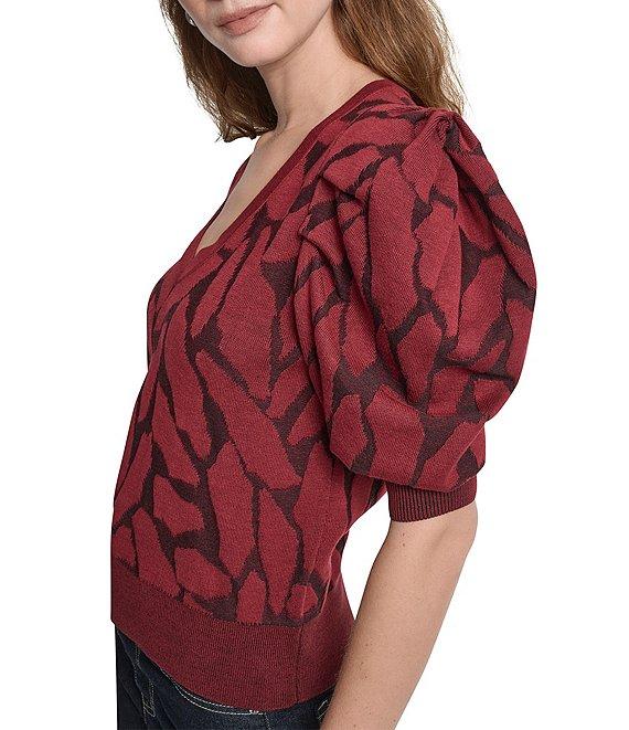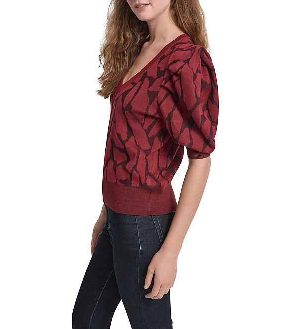 DKNY by Donna Karan Textured Knit V-Neck Puff Sleeve Top