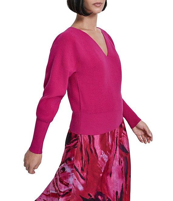 DKNY by Donna Karan V-Neck Extended Cuff Dolman Sleeve Sweater