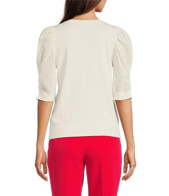 Woven & Knit Puff-Sleeve Notch-Neck Top