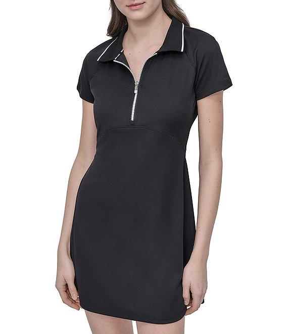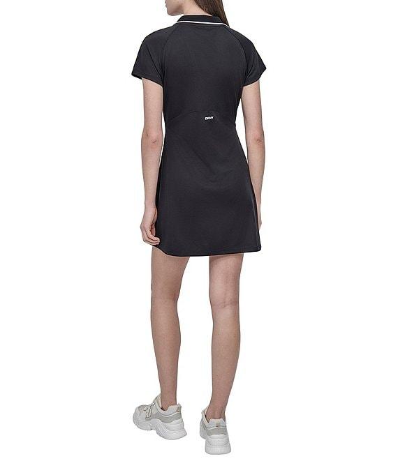 From DKNY Sport by Donna Karan, this dress features: A-line silhouette Polo collar neckline Short sleeves Contrast piping Quarter- zip closure Approx. 33" length Polyester Machine wash cold Imported.