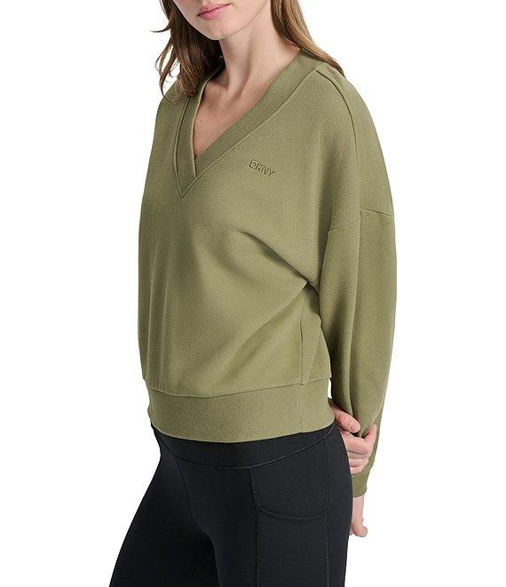DKNY Sport by Donna Karan Deep V-Neck Embodied Logo Long Sleeve Sweatshirt