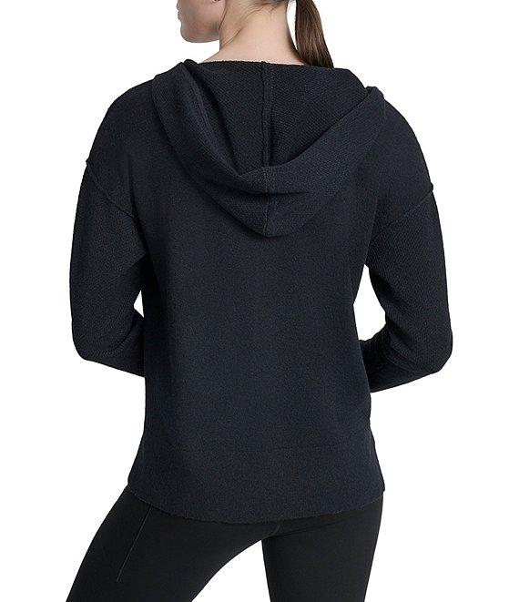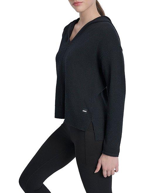 From DKNY Sport by Donna Karan, this hoodie features: Open pointelle stitch fabrication v-neckline Long sleeves Relaxed fit High-low hemline Pullover construction Approx. 24" length Polyester/acrylic/elastane spandex Hand wash/ flat dry Imported.