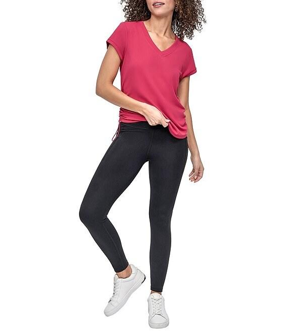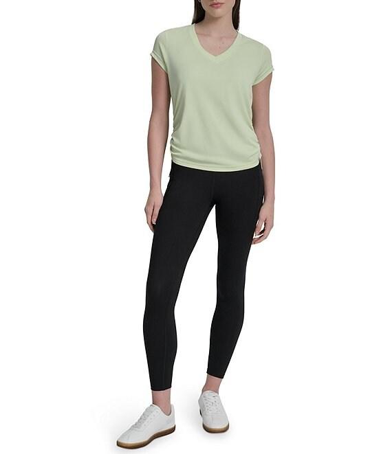 DKNY Sport by Donna Karan V Neck Short Sleeve Tech Ruched Side Seam Tee
