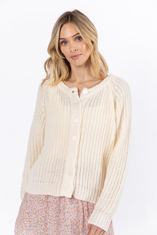 Details Cream Button Up Cardigan Fabric has stretch Crew neckline, long sleeves, ribbed hem Unlined Size small from shoulder to hem: 23" Material and Care 100% polyester Machine wash cold, line dry Patterns may vary Materials may have natural variations Colors may vary from different viewing devices.