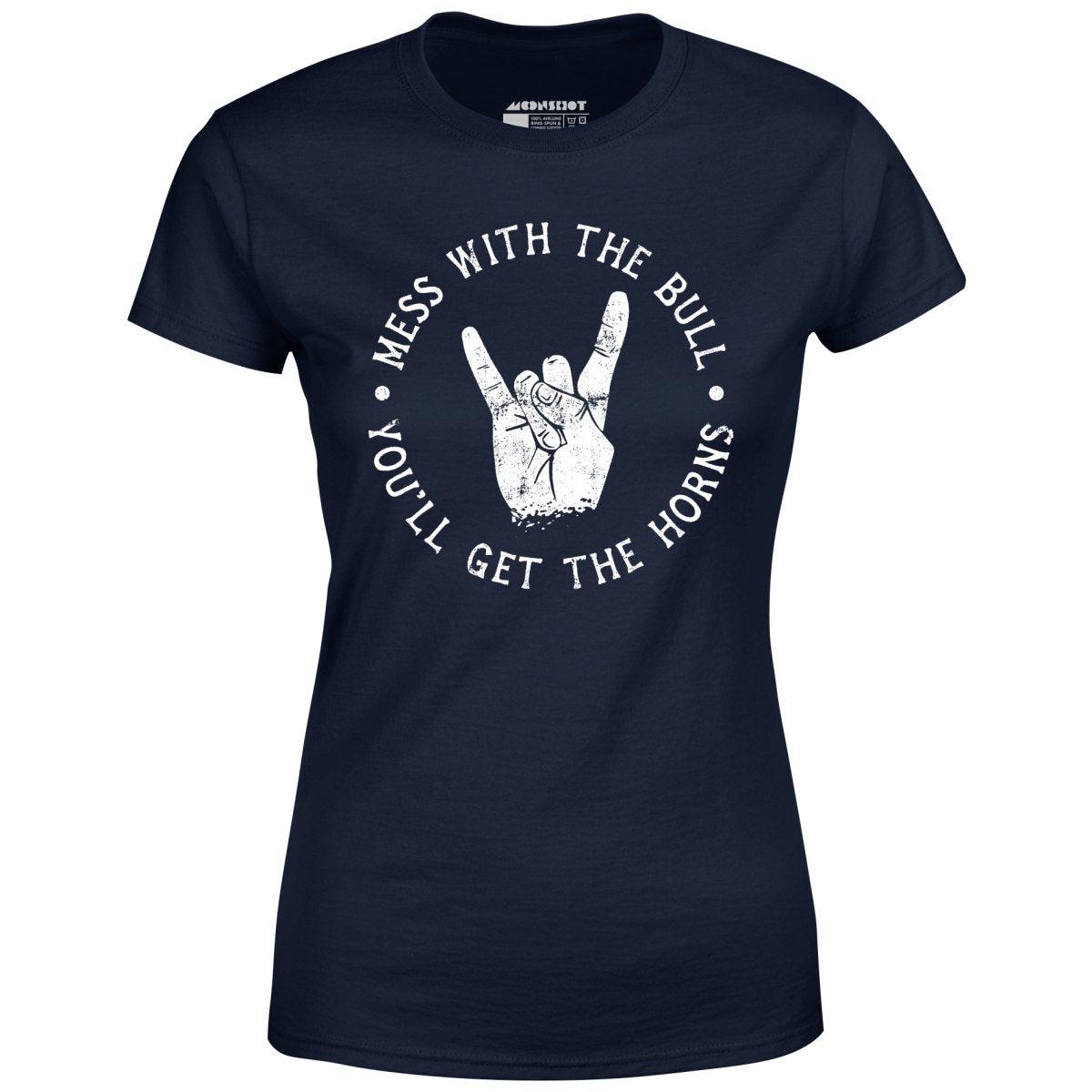 Mess with the bull, you'll get the horns. Printed on our super soft 100% ringspun & combed cotton women's T-Shirt. Or upgrade to our Luxury 52/48 cotton/poly vintage heather edition for an even softer classic look. We print & ship all of our high quality graphic tees in the USA.