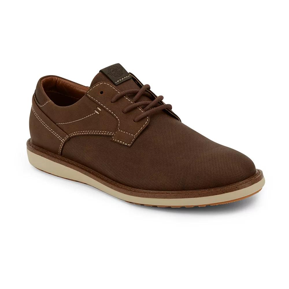 Meet the new name in casual Oxford shoe. The Dockers Blake takes a modern approach to classic footwear, designed for lightweight comfort that'll keep you looking and feeling your very best no matter where you go. Lace-up closure with four pairs of eyelets. Distressed synthetic uppers with paneling and handstitched detail. Synthetic lining and cushioned latex insole provide continued comfort for longer wear. Grooved TPR outsole provides good traction and stability. Imported. Measurements: Weight: 11 oz Product measurements were taken using size 9, width D - Medium. Please note that measurements may vary by size. Weight of footwear is based on a single item, not a pair.
